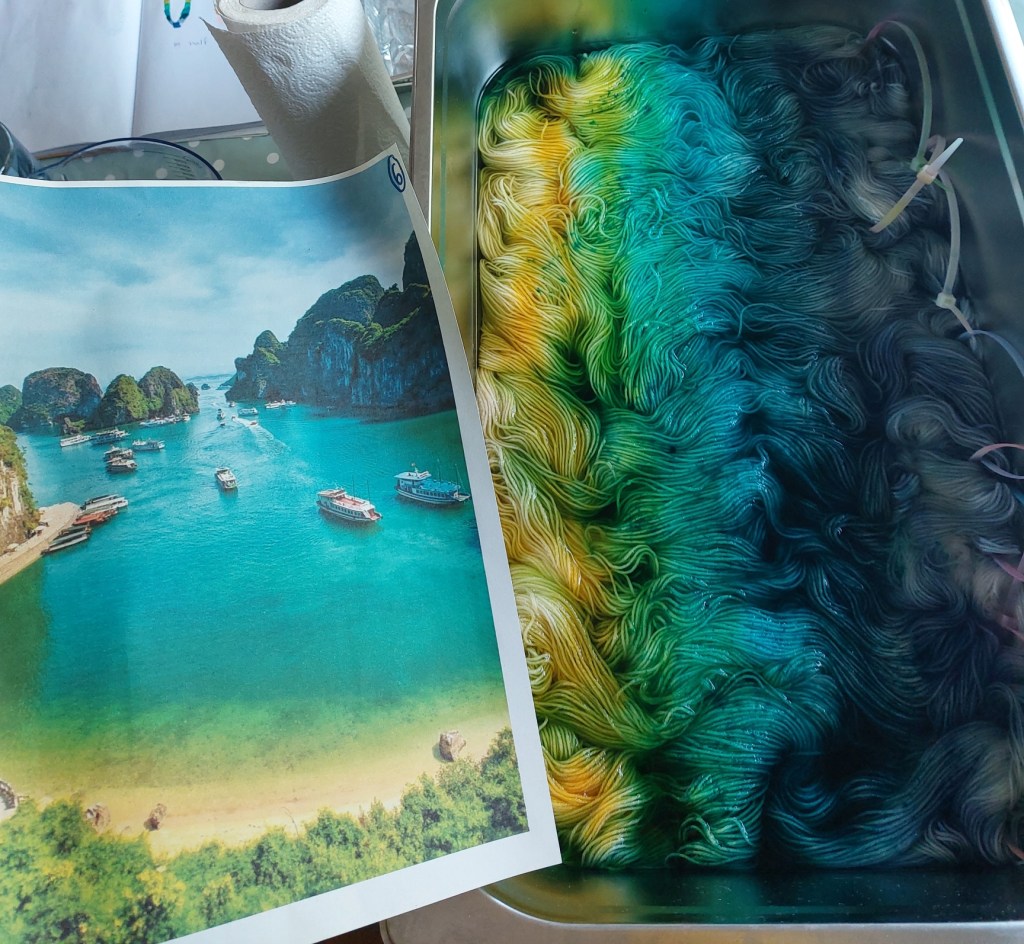 I adore this fade colourway, it dips from stunning blue through green to the bright sandy yellow shores and back!! It mirrors the inspiration image perfectly with so many colours all in one. LOVE!