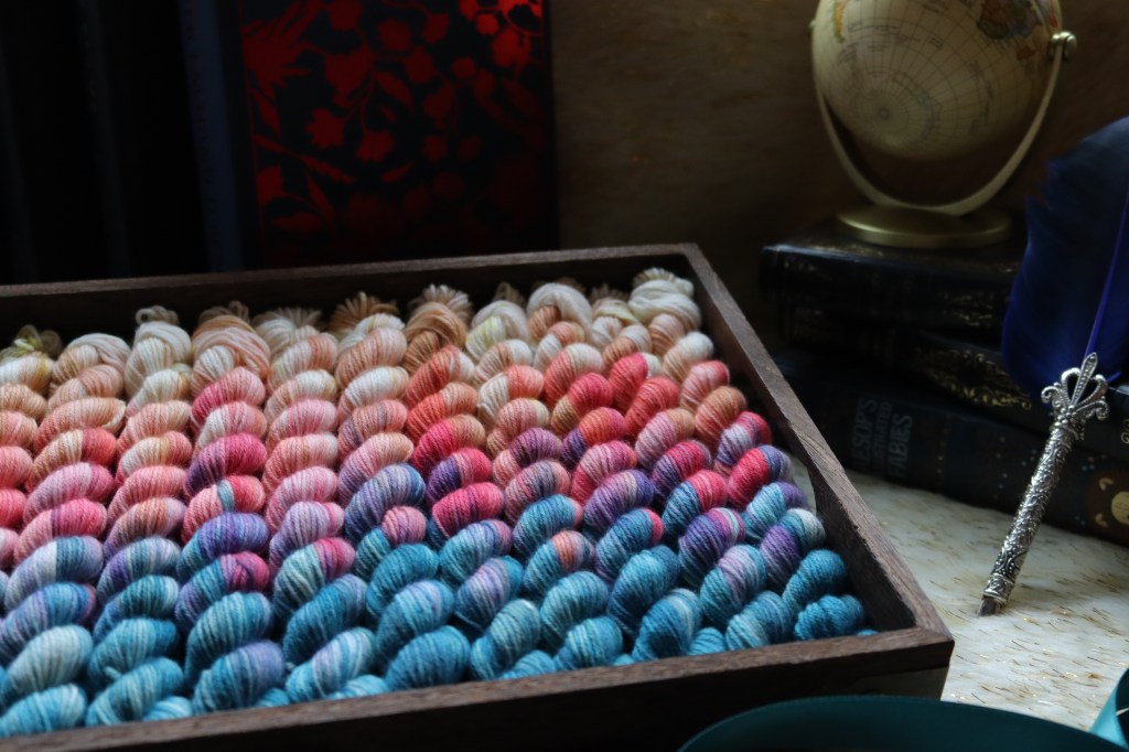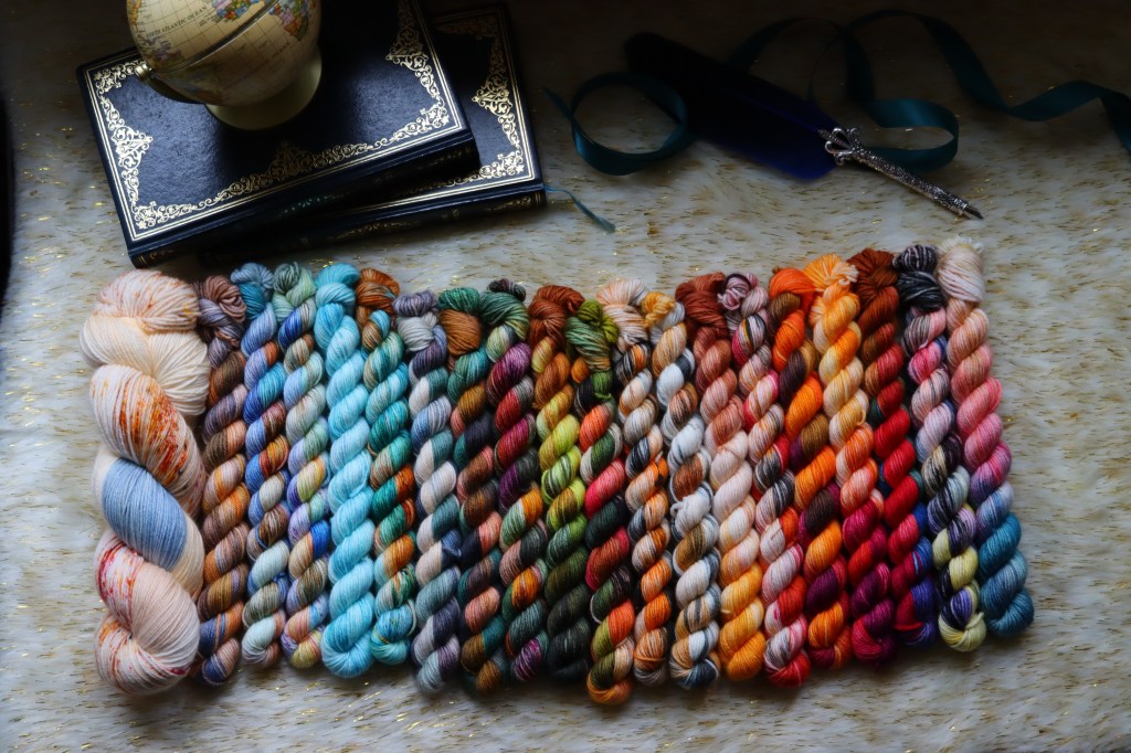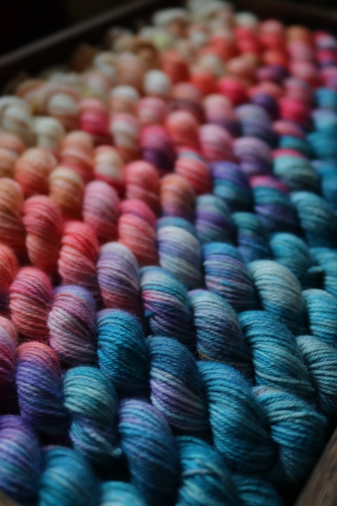 I really hope most of you guessed this one as its a pretty unique mix of colours! Beautiful ivory throught to coral and baby pink with some lilac then into the beautiful sea green blues… with the essential pop of lime green! Its just scrumptious!