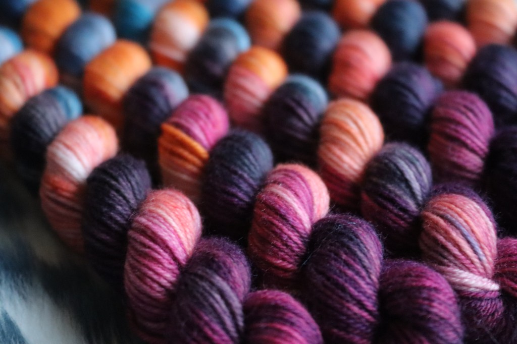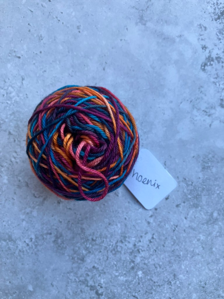 Inspired by the flames and plumage of the firebird, this colourway had deep and rich hues of burgandy, orange, and teal. This is another one that will be available for preorder in January!