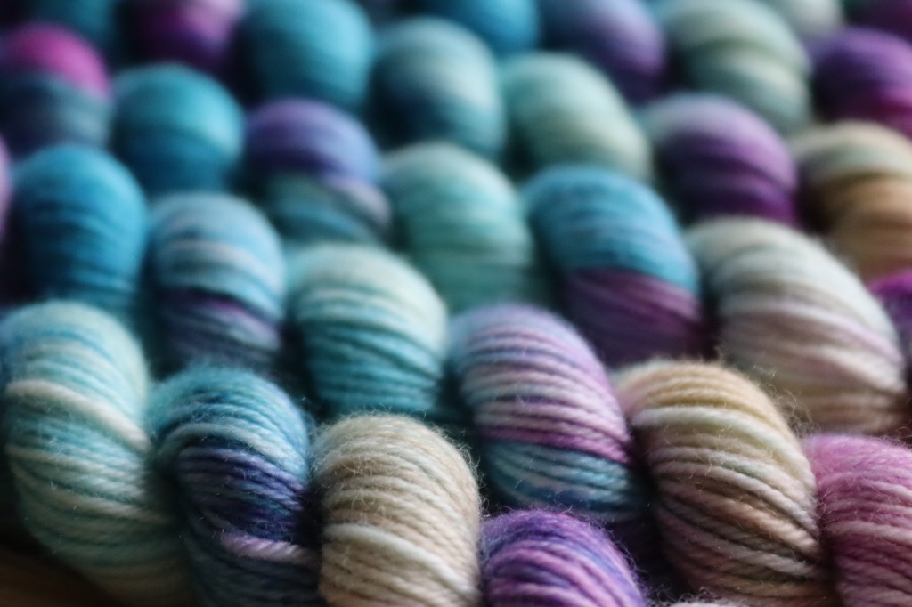 A lovely progression and complimentary yarn to yesterday’s. Head to the bottom of the blog to see the yarn worked up.