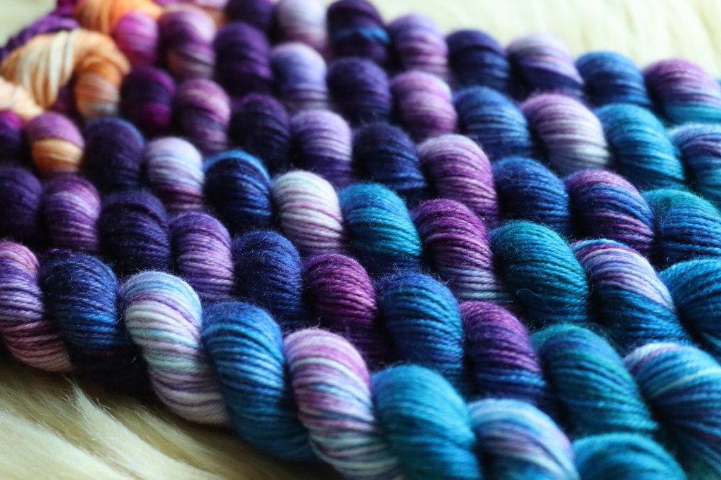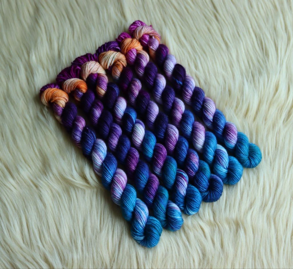 The colourway is inspired by the stunning image above. The rich plum and purples through bright sea blues and navy meet a splash of bright yellow. This colour is so seaworthy!