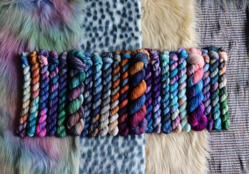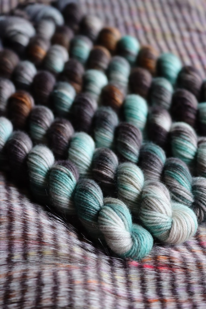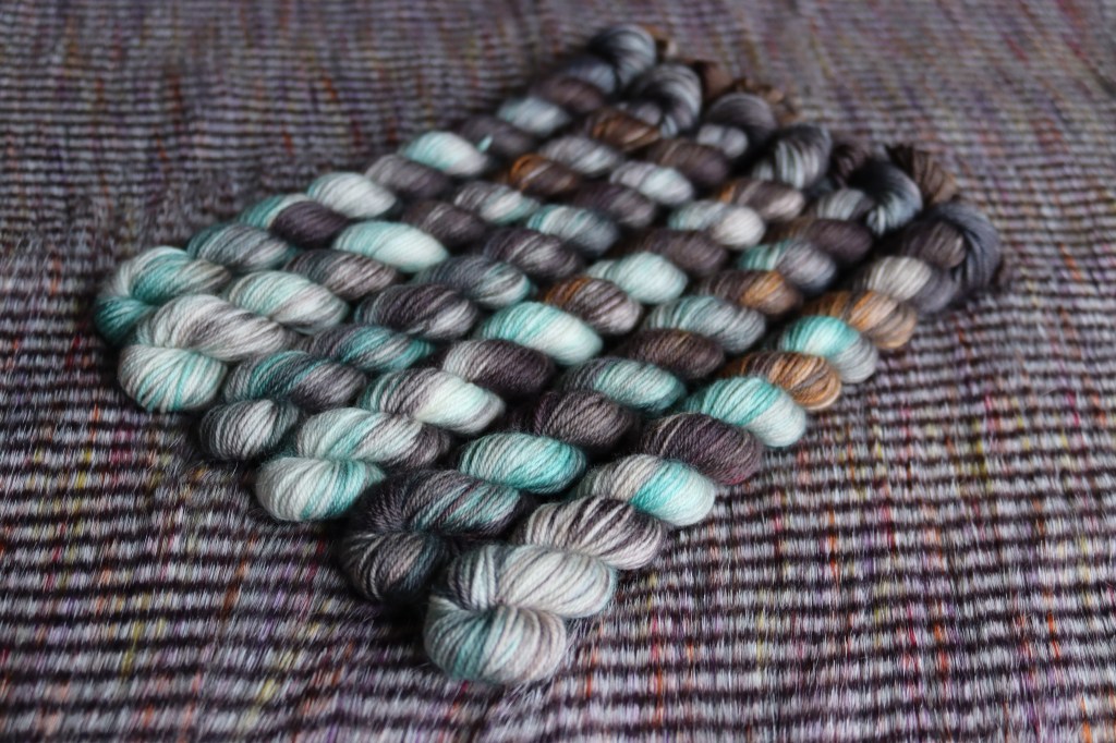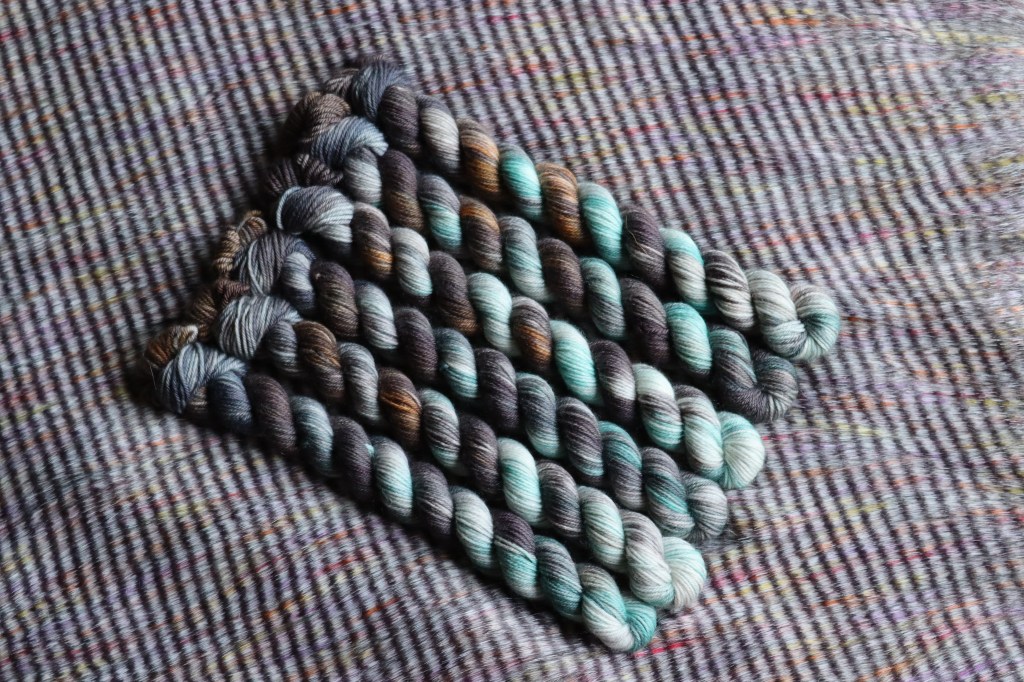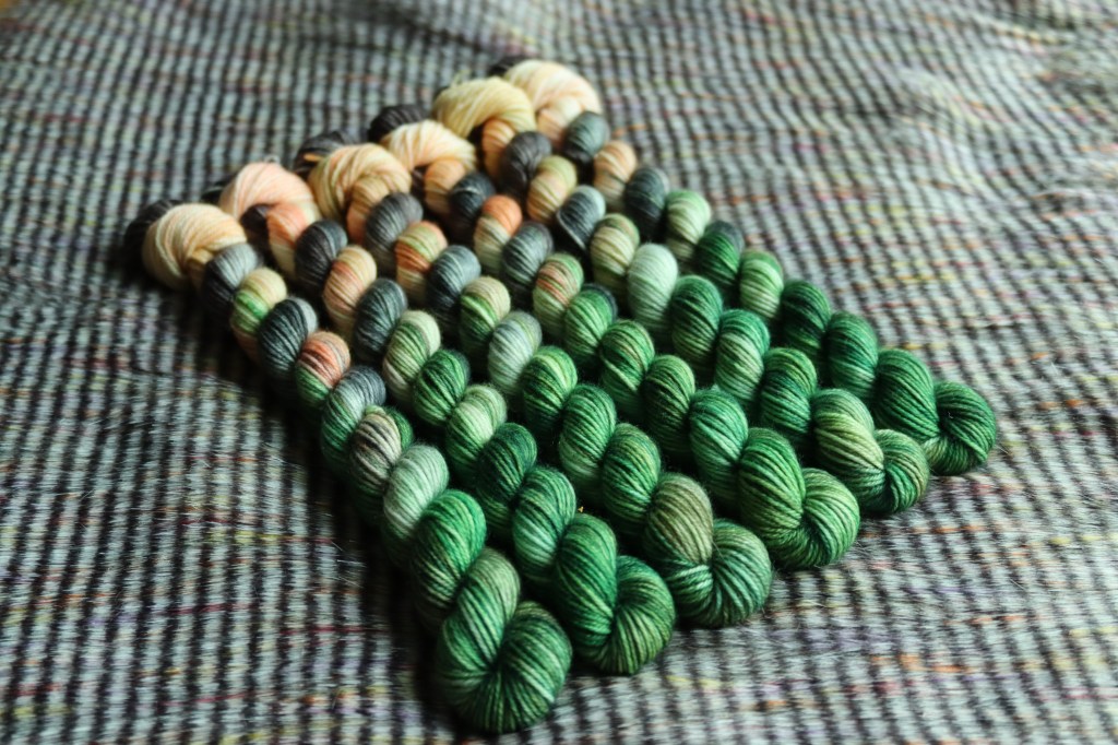 Deep greens, greys, and mixed browns make this the rich colourway on our final 50g. This grungy colourway perfectly finishes this triangle for the dark realm in Phantasmaland.