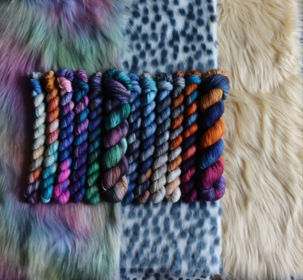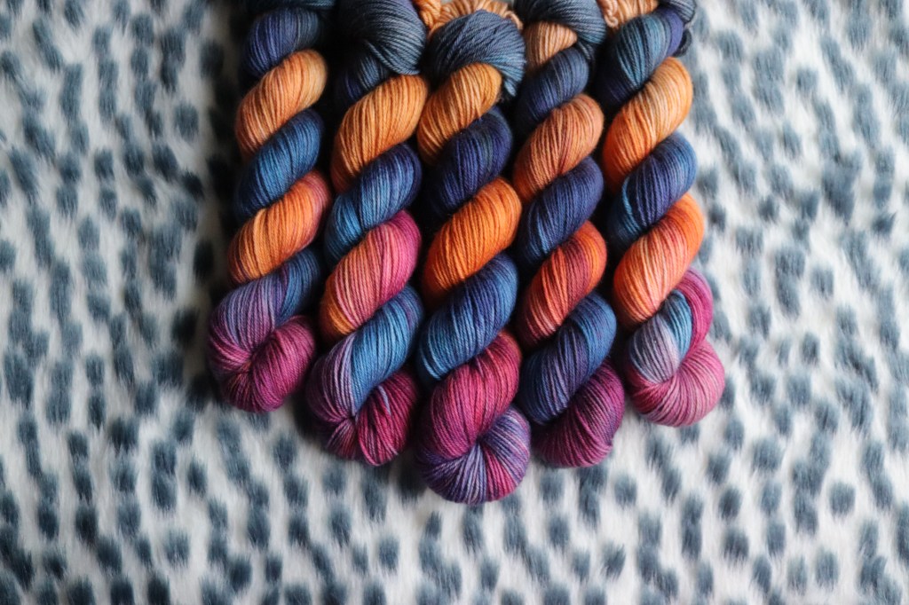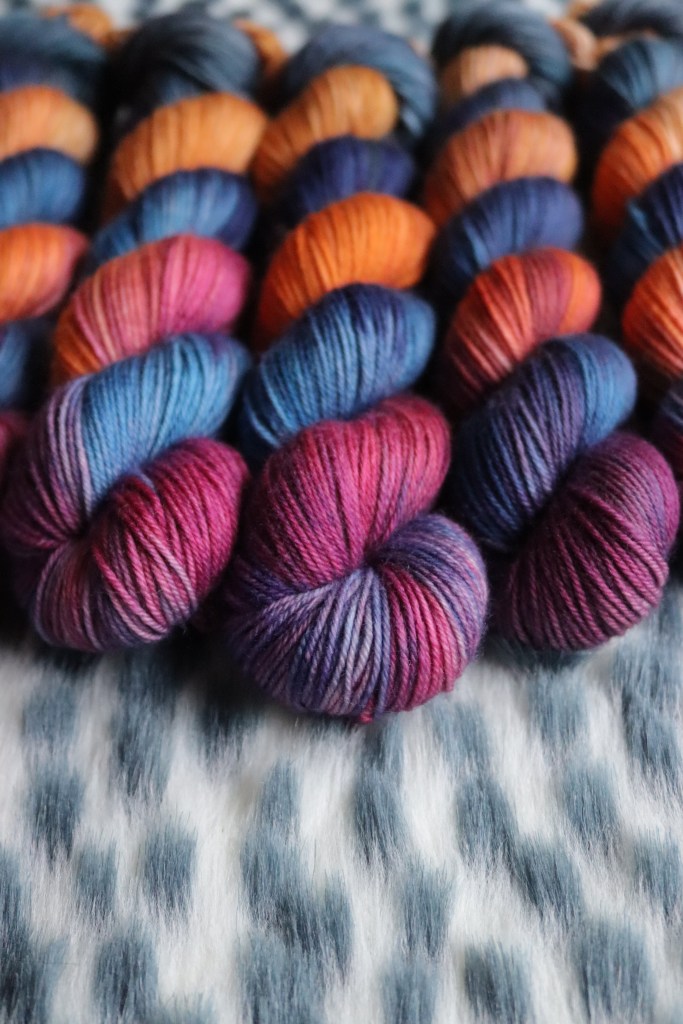 A beautiful yarn inspired by the colours of the Reef and the mermaid iridescent scales. Tones of blue and green meet with pale sand yellow, pinks and purples.