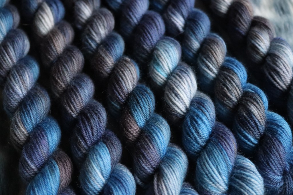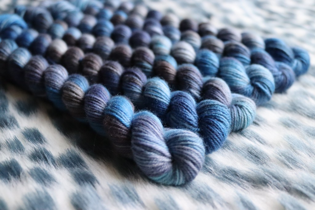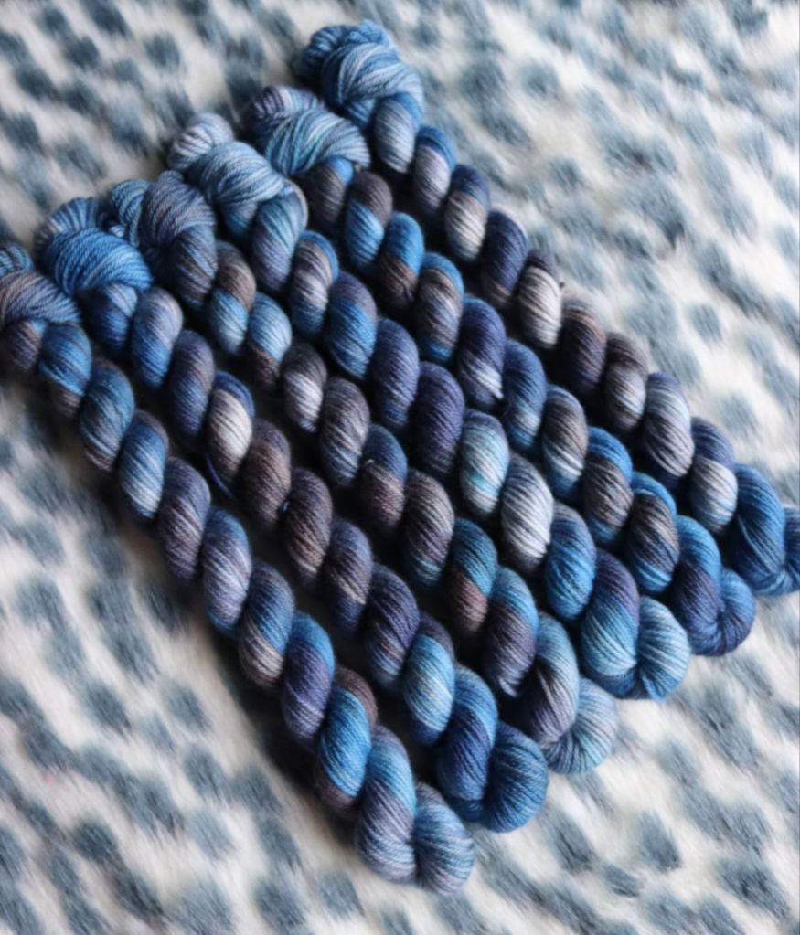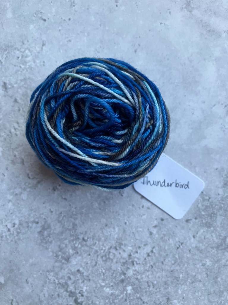 This colourway pulls the ivory, pale blues, and greys to for a gorgeous yarn, perfectly representing the majestic sky creature.